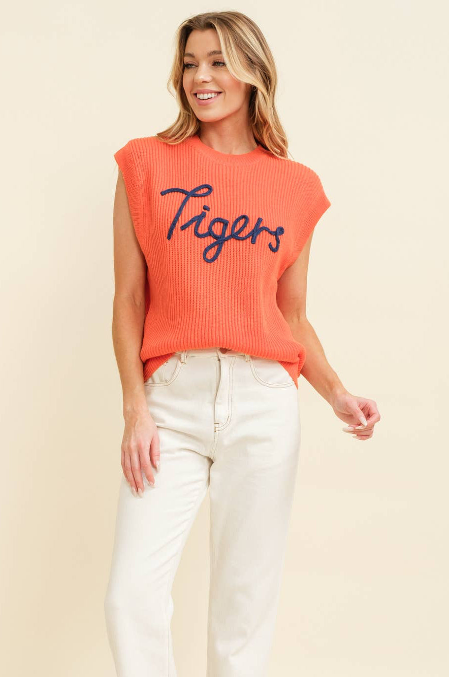 This Tigers embroidered sleeveless sweater is trendy, chic, and full of team spirit! Perfect for game day or any day you want to show off your Auburn pride in style.