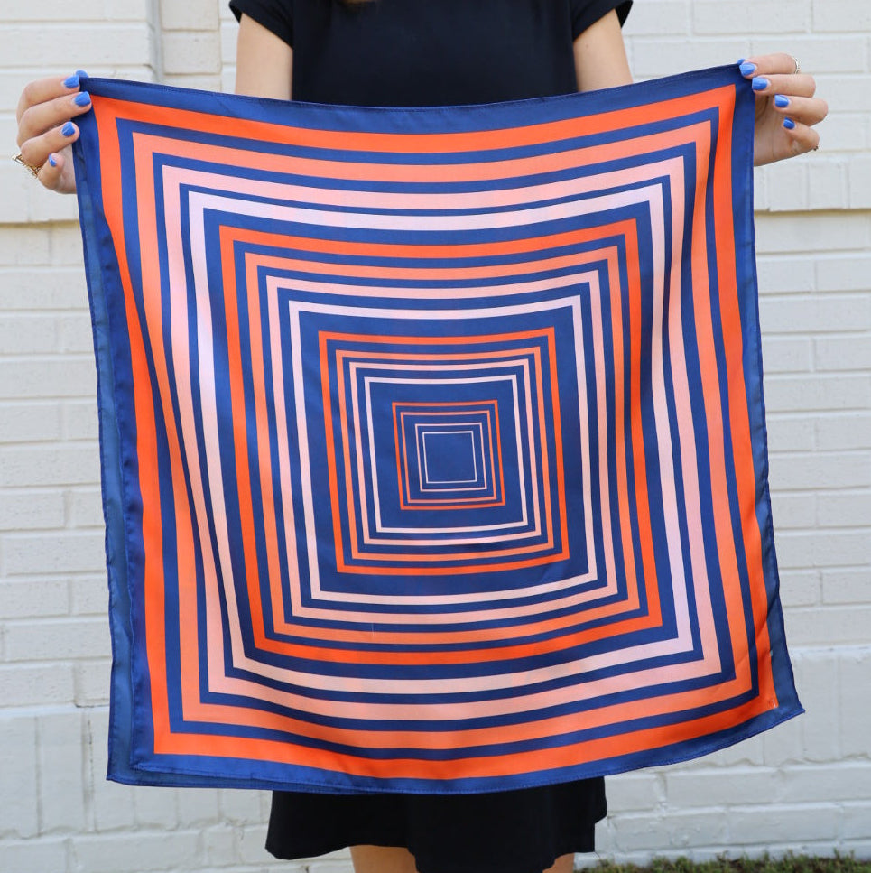 Whether you tie it in your hair, around your neck, or on your favorite bag, this faux silk scarf is the perfect way to add a little flair to your game day look!