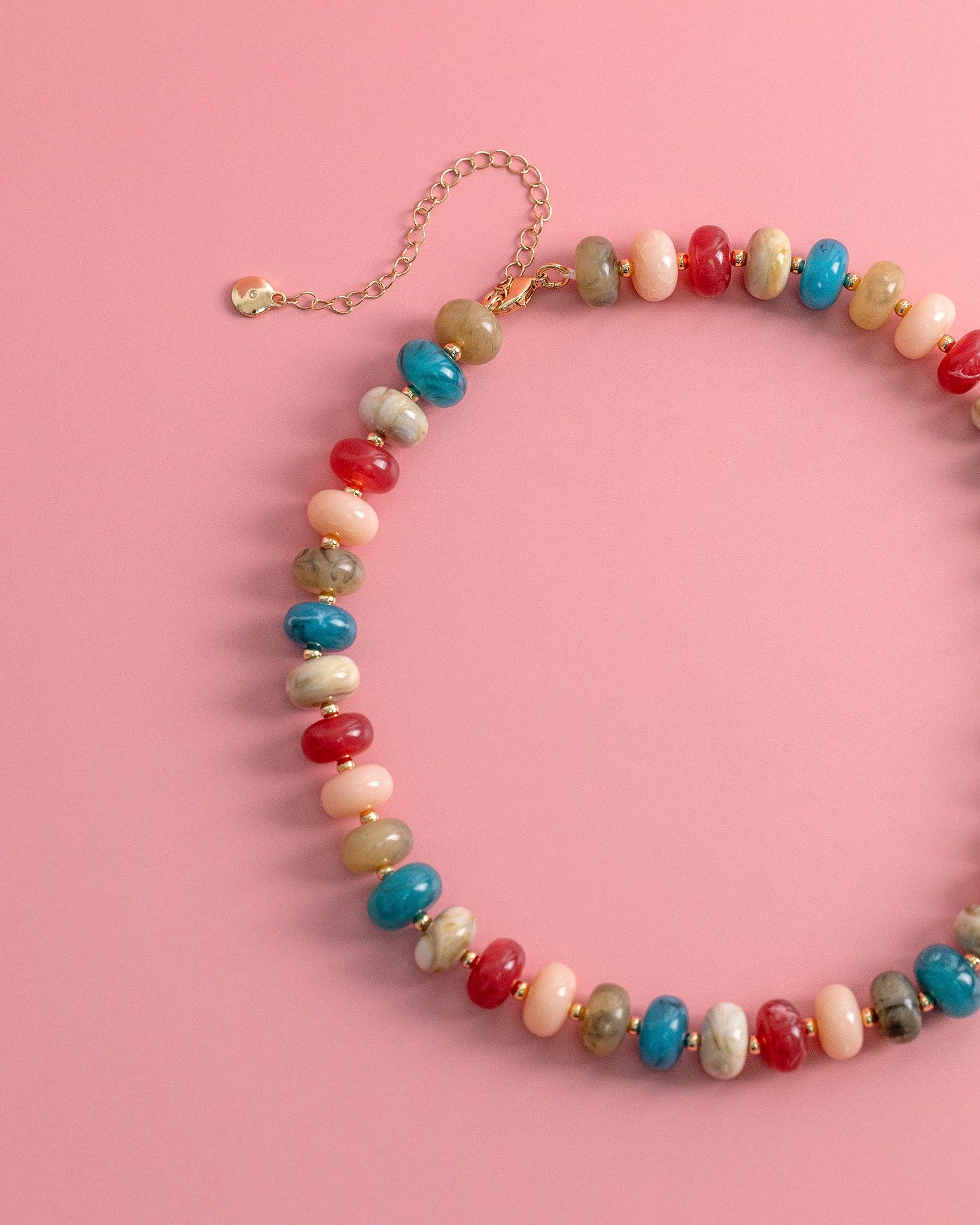 Smooth, chunky beads that add a splash of color to any outfit! Each strand swirling with marbled color and gold details!