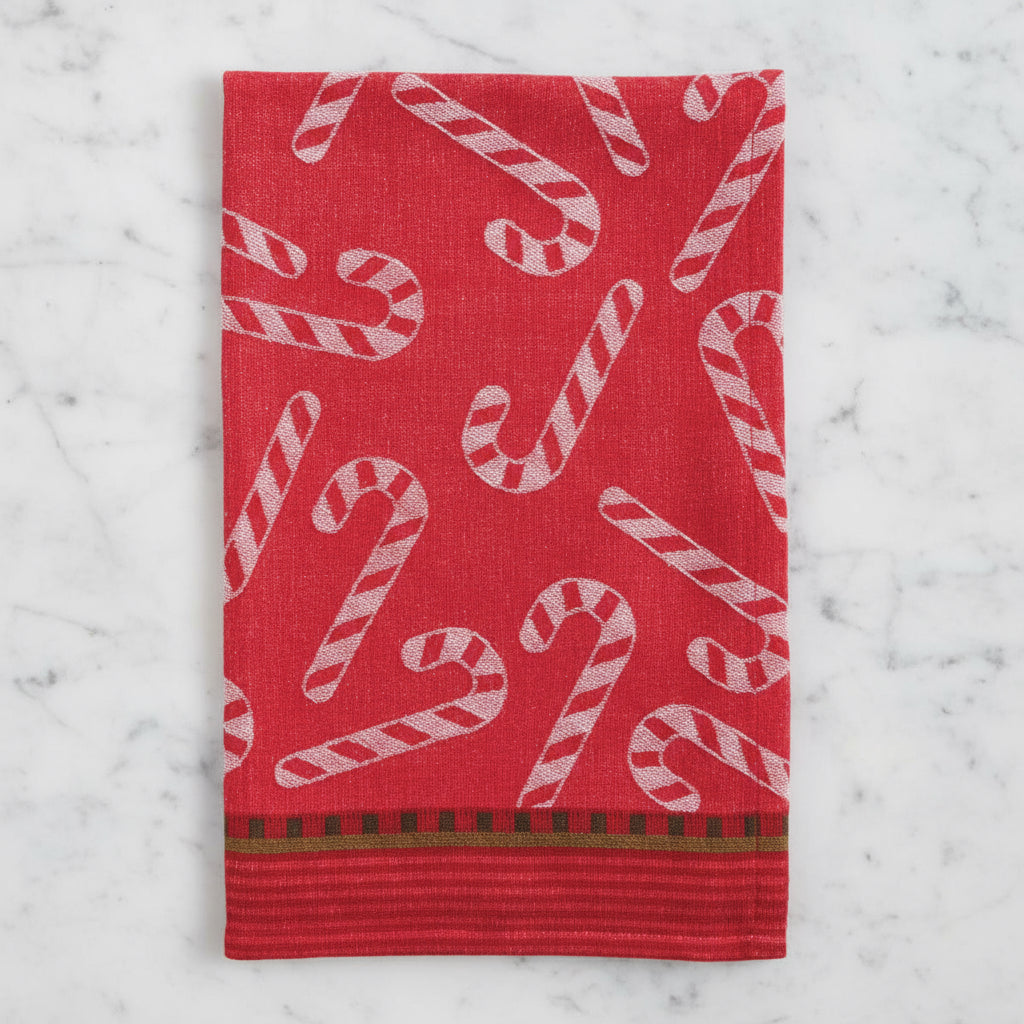 Elevate your holiday decor with this fun and festive candy cane tea towel!