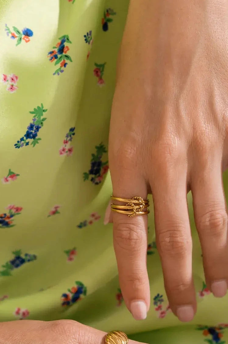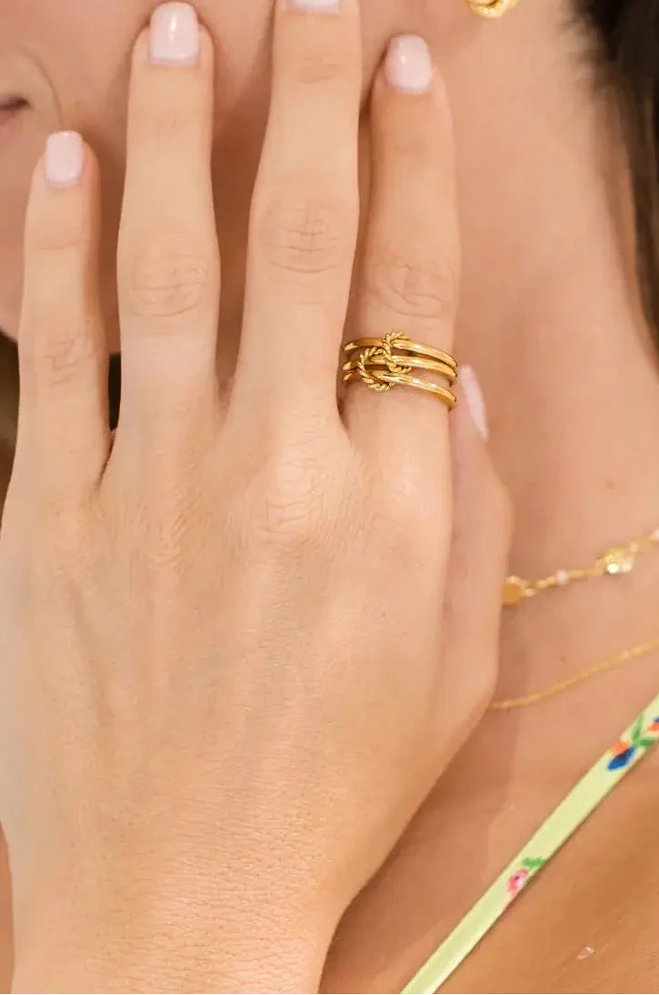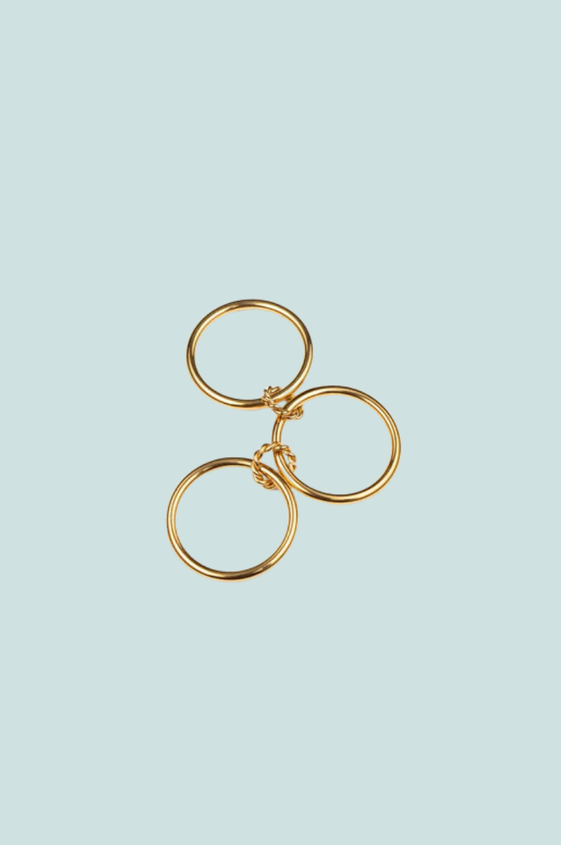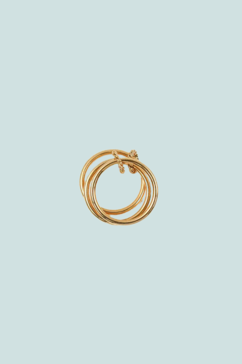 A sleek design featuring three intertwined hoops crafted within a durable gold-filled band. The hoops connect seamlessly with a twisted closure for a modern, elegant touch.